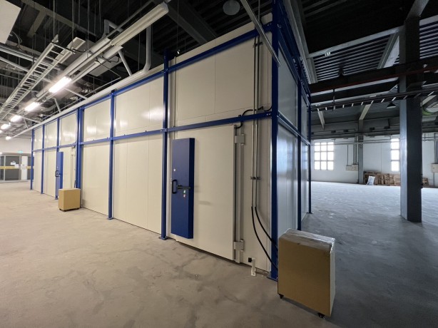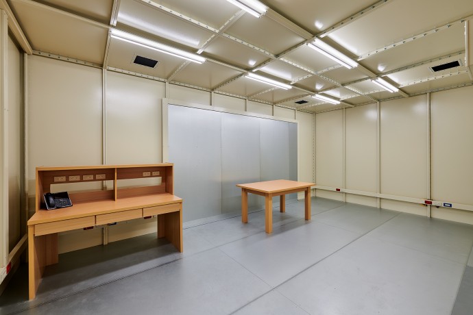 所有隔離牆面均以此模組化結合,此模組鋼材為2mm厚度的鍍鋅鋼板並於邊緣折角以加強抗灣性,於兩接角處以滿焊處理以加強隔離效果,並於表面處理前每隔約<100mm鑽孔,組裝時加上隔離帶以M10帶有紋路的螺絲固定並以鈕力旋緊相互接合。此型必須為由內部鎖裝。